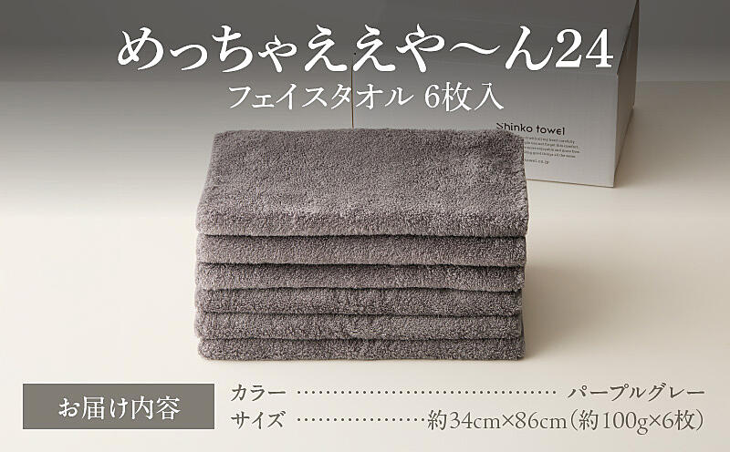 099H4272 めっちゃええや~ん24 フェイスタオル 6枚 パープルグレー