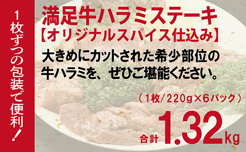 G3365 【満足牛ハラミステーキ】オリジナルスパイス仕込み 1枚220g×6P 合計1.32kg