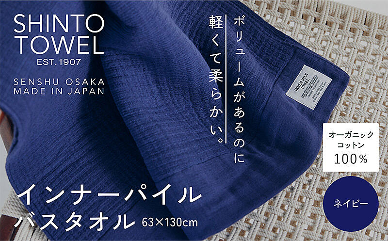 G3033 SHINTO TOWEL「インナーパイル・バスタオル」(ネイビー)オーガニックコットン100%