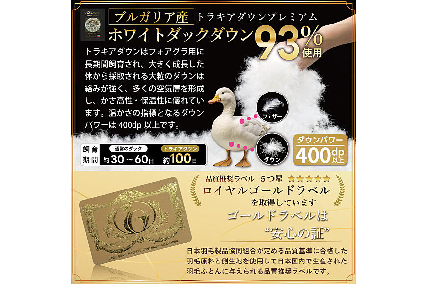 ◆羽毛・・・ブルガリア産ホワイトダックダウン93% ロイヤルシルバーラベル
