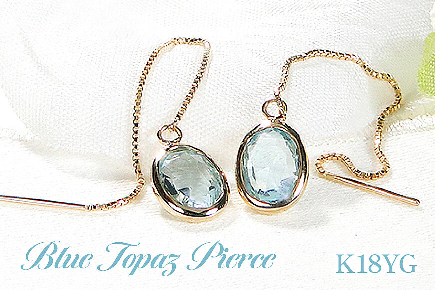 ピアス チェーンピアス K18YG イエローゴールド ブルートパーズ 【f233-bt-k18yg】 [20745212]