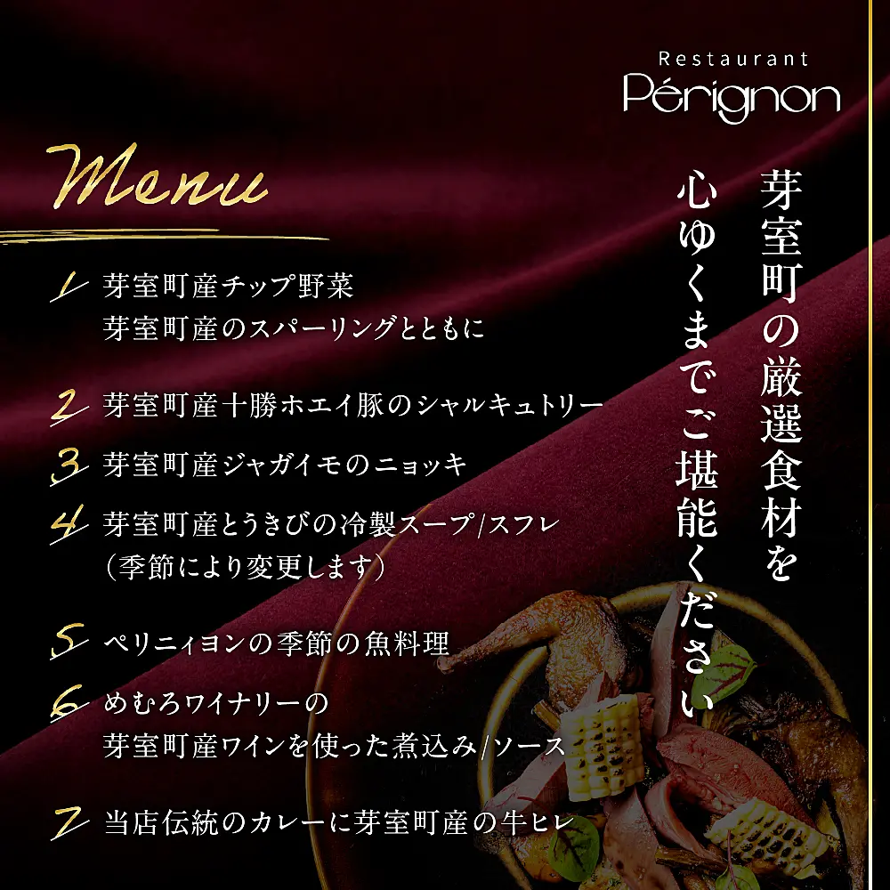 芽室町の特産品を使用したフルコースお食事券をお届けします。