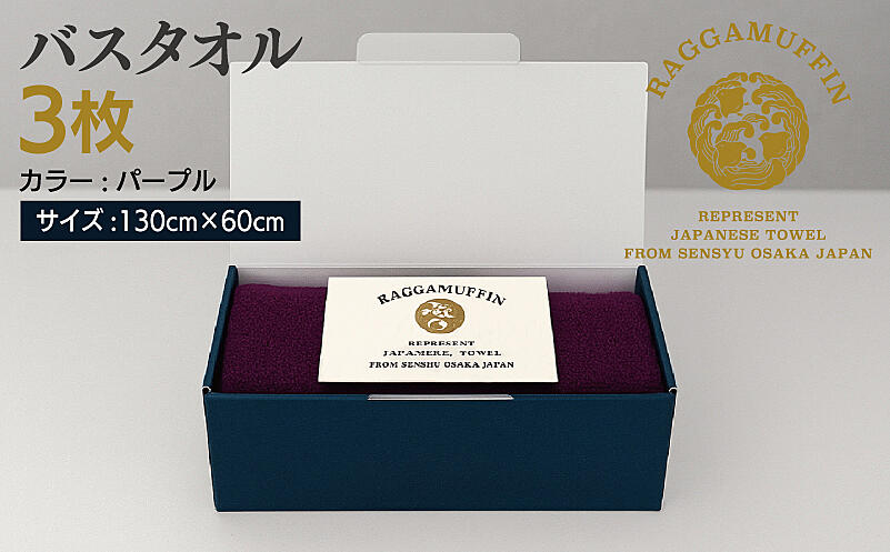 099H3801 高級泉州タオル ラガマフィン バスタオル パープル 3枚