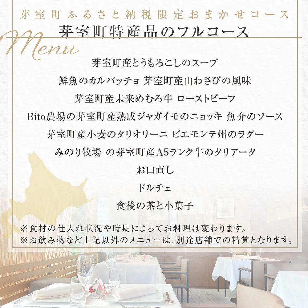 芽室町の特産品を使用したフルコースお食事券をお届けします。