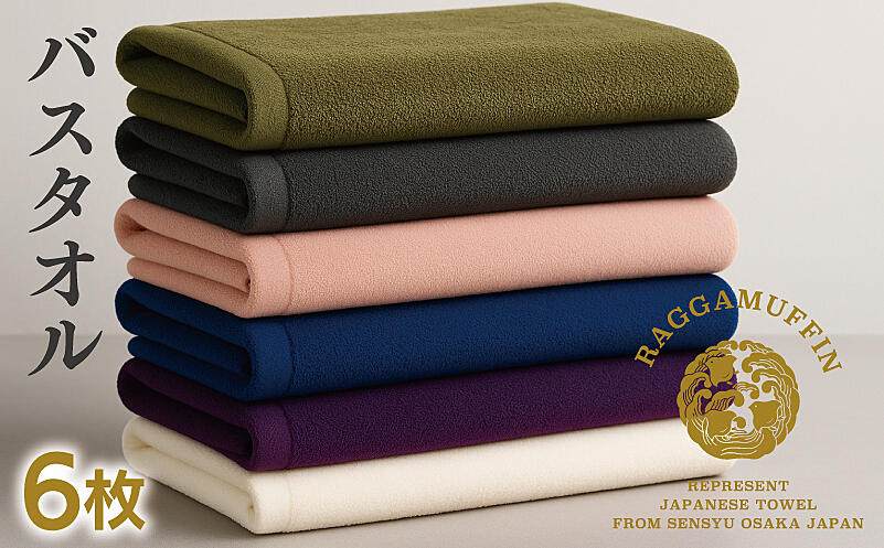 099H3821 【スピード発送】高級泉州タオル ラガマフィン バスタオル 6色6枚セット