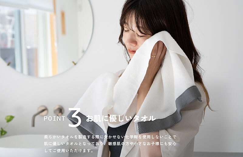 厳しい検査基準をクリアした安心・安全・高品質なブランド、泉州こだわりタオル認定タオルです。