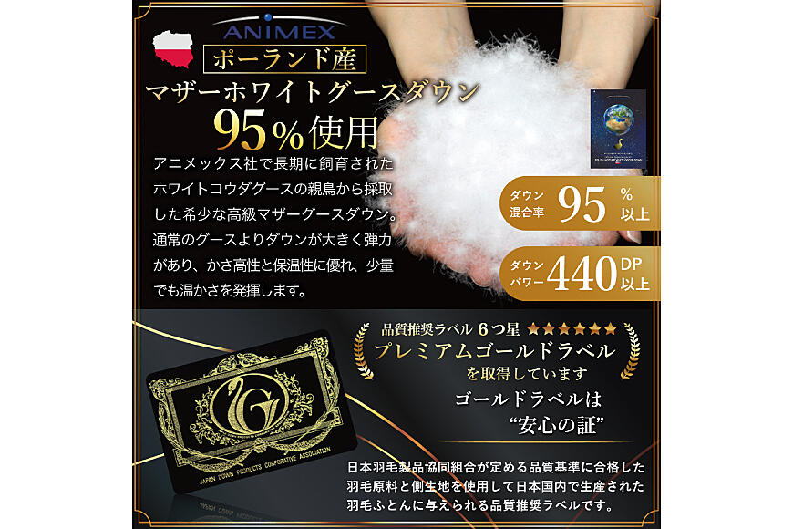 ◆羽毛・・・ANIMEXポーランド産マザーグースダウン95% プレミアムゴールド