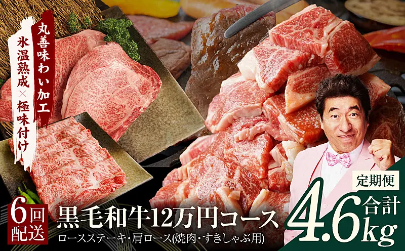mrzZ004 黒毛和牛 定期便 全6回 ステーキ/焼肉/すき焼き・しゃぶしゃぶ12万円コース 丸善味わい加工【毎月配送コース】