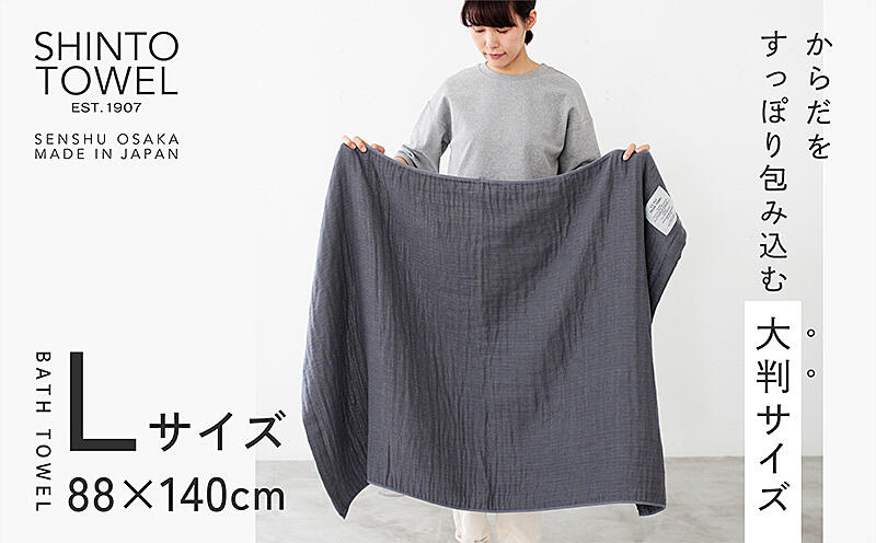 099H3947 SHINTO TOWEL「2.5重ガーゼ・バスタオル」Lサイズ(チャコール)オーガニックコットン100%