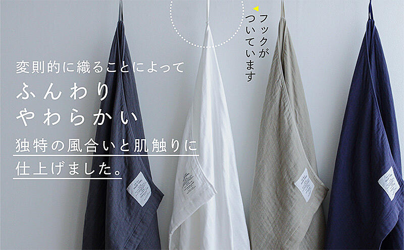 2.5重の特殊ガーゼ織りによって、ふわっと軽く、優れた吸水性と速乾性を持つ、真っ白なタオルです。