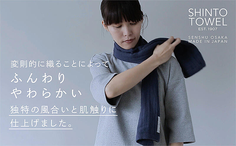 マフラータオルはフェイスタオルを縦長に仕上げたサイズ感で、軽い運動やお散歩の時、キッチン周りでも使いやすいタイプです。