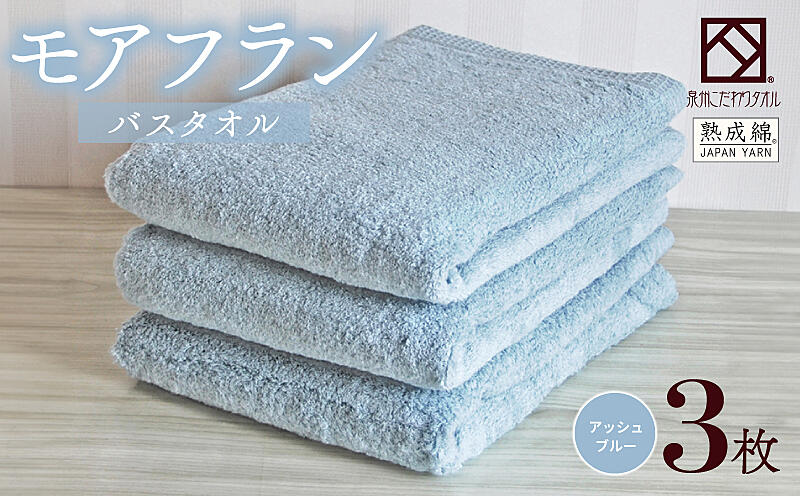 099H4059 泉州タオル「モアフラン」バスタオル 3枚 アッシュブルー