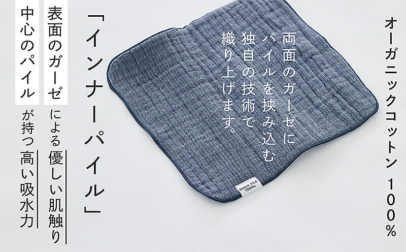 099H3979 SHINTO TOWEL「インナーパイル・ミニタオル」(チャコール)3枚セット オーガニックコットン100%