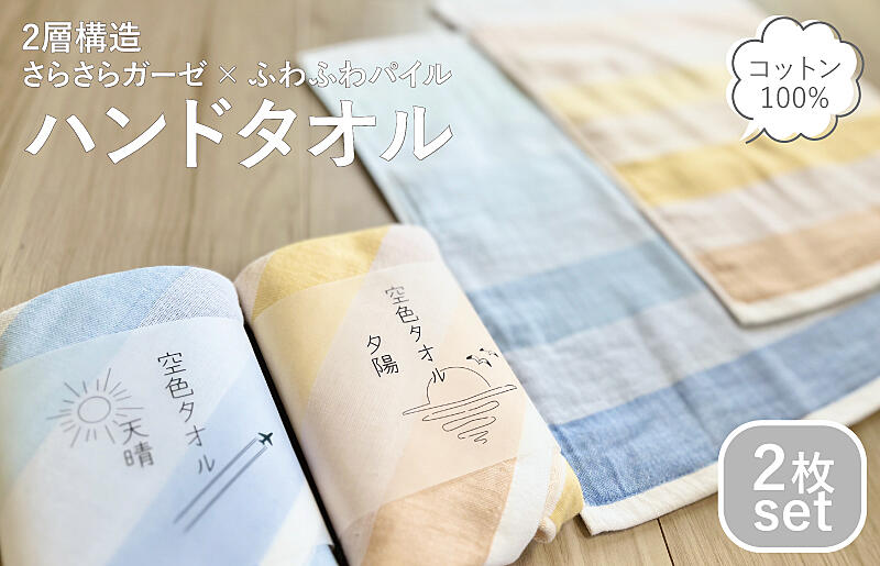 G3175 【スピード発送】空色タオル 2枚セット (天晴1枚/夕陽1枚)【ハンドタオル 泉州タオル 日本製 ギフト 贈り物】