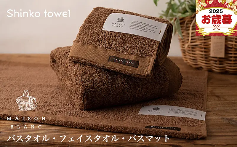G2682o 【お歳暮対応】MAISON BLANC バスタオル1枚 フェイスタオル1枚 バスマット1枚 チェストナット
