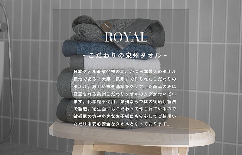 G3273 ロイヤルバスタオル 2枚(ホワイト・ライトグレー 各1枚)【日本製 泉州タオル 吸水 日用品】