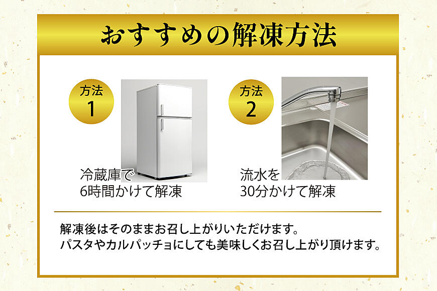 パスタやカルパッチョにしても美味しくお召し上がり頂けます。