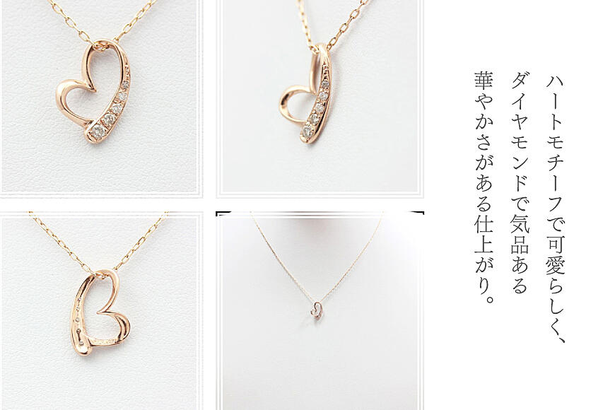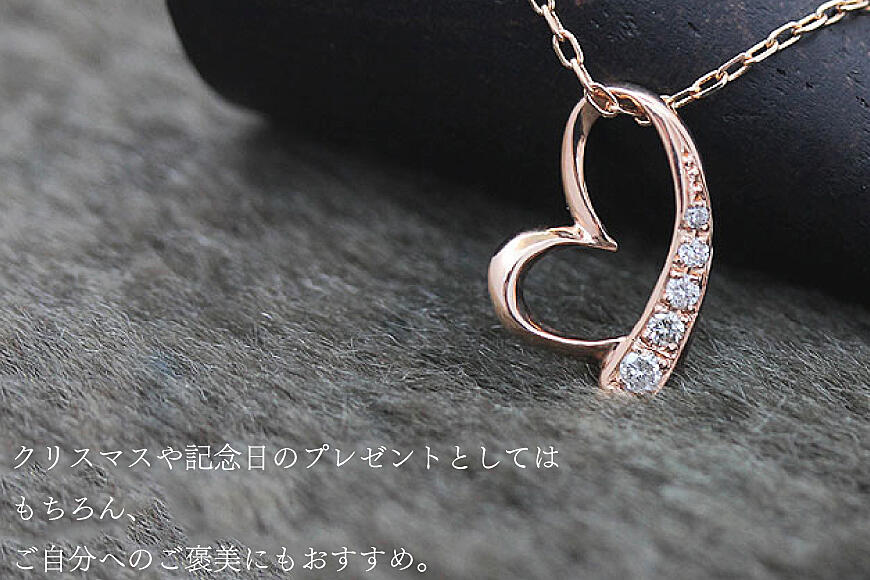 ネックレス K10PG ピンクゴールド オープンハート ダイヤモンド 0.06ct 【f062-k10pg】[20745089]