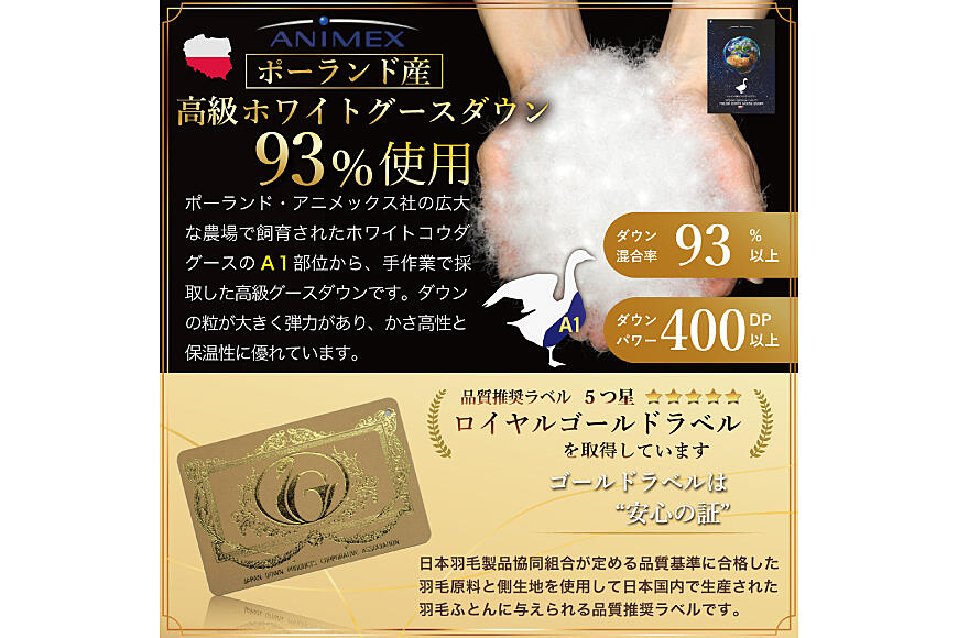 ◆羽毛・・・ポーランド産ホワイトグースダウン93% ロイヤルゴールドラベル