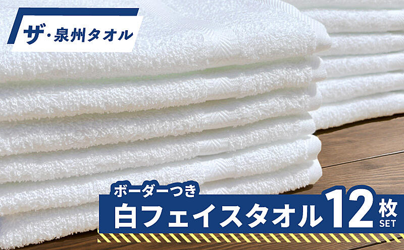 099H3698 【スピード発送】ザ・泉州タオル (ホワイト 約34×86cm 12枚) ボーダーつきフェイスタオル