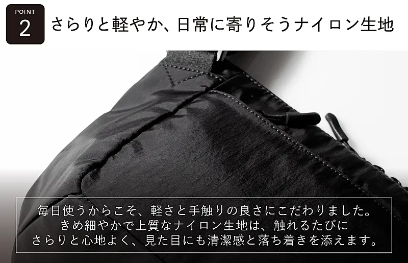 素材にはナイロンを100%使用し、耐久性と軽さを両立しました。