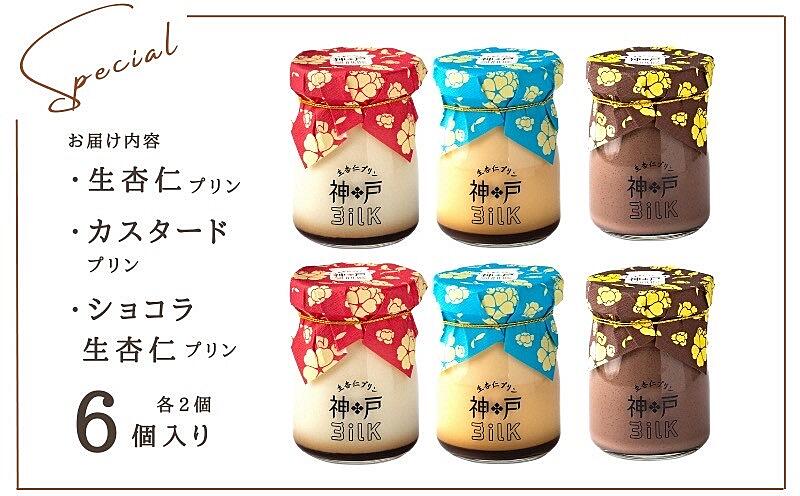 010B1766 【神戸milk】生杏仁プリン×カスタードプリン×ショコラ生杏仁プリン 各2個セット 合計6個【神戸ミルク】