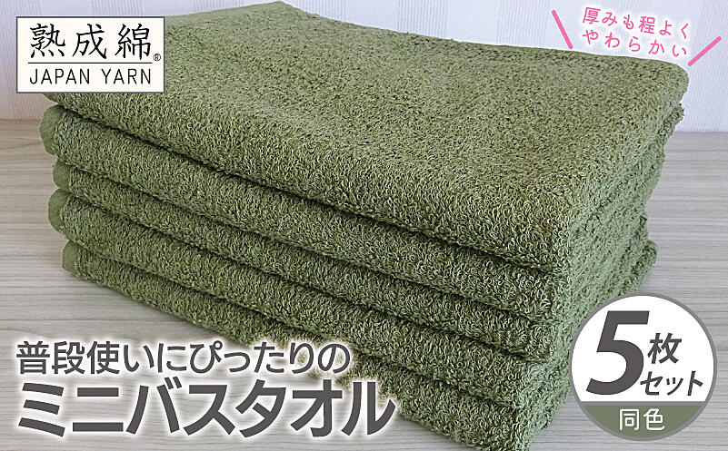 knt0072 普段使いにぴったりのミニバスタオル 5枚【グリーン 泉州タオル】