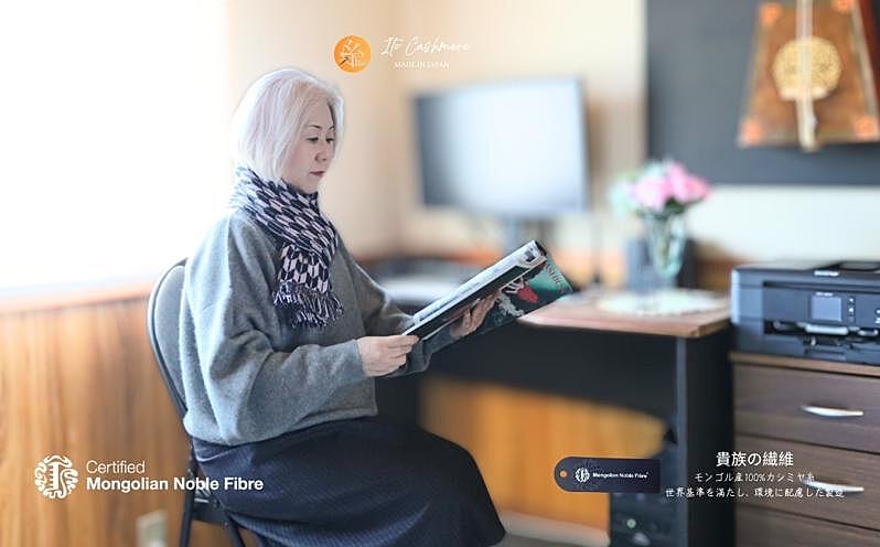 - 原材料:モンゴル産カシミヤ100%糸、製造:泉佐野市