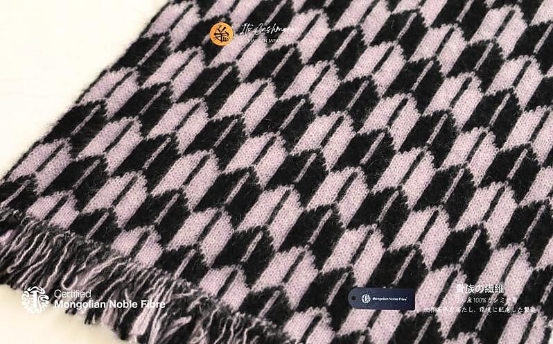 G3326 『Noble Fibre』100%カシミヤ・マフラー ヤガスリジャガード(フサつき)【高級 カシミア おしゃれ】