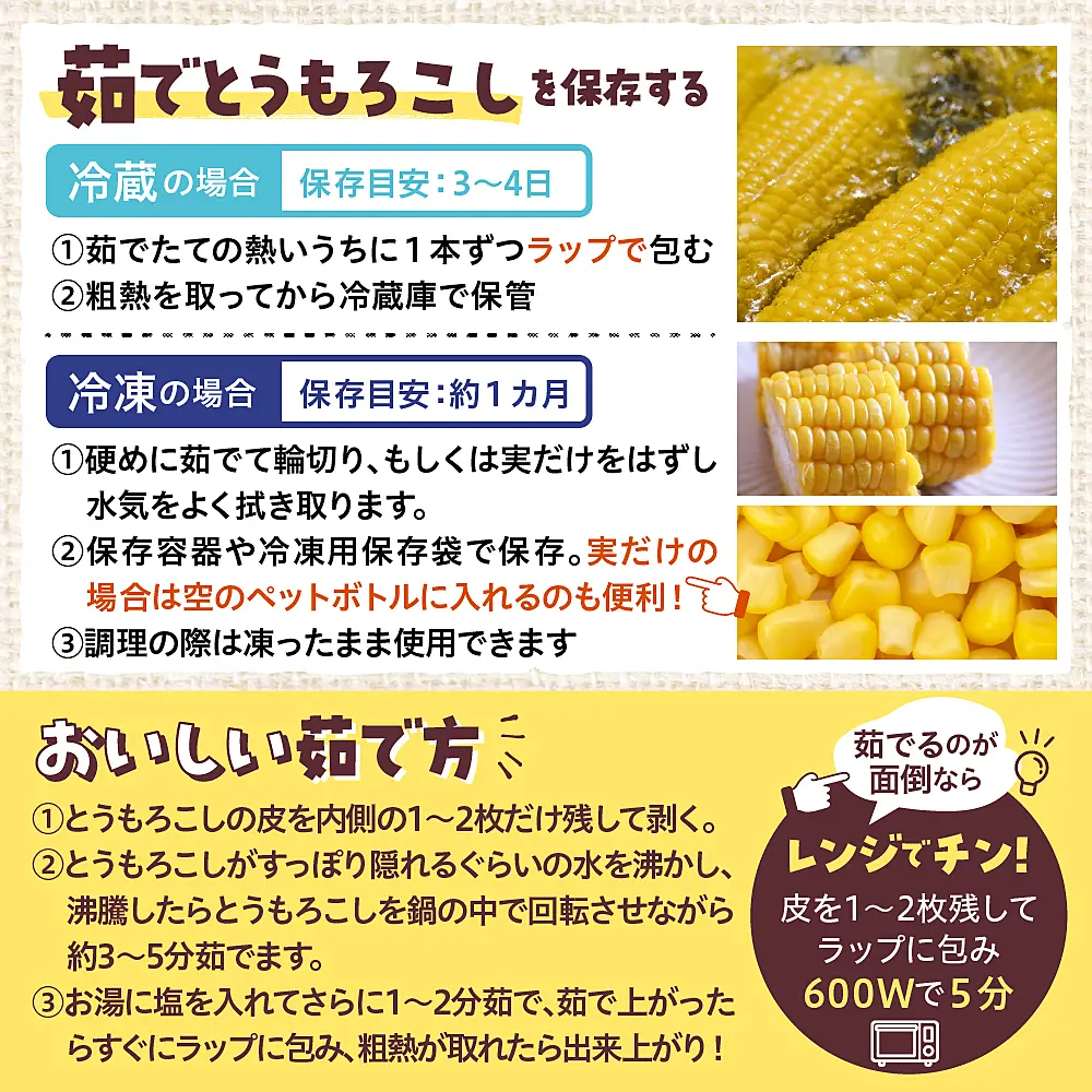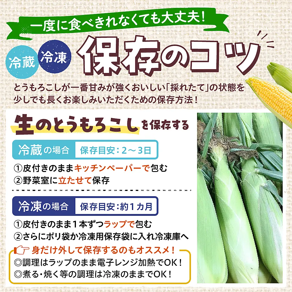 ※天候不良等で数量が確保できなかった場合は、とうもろこし以外の代替品発送となる可能性がございます。何卒ご了承ください。