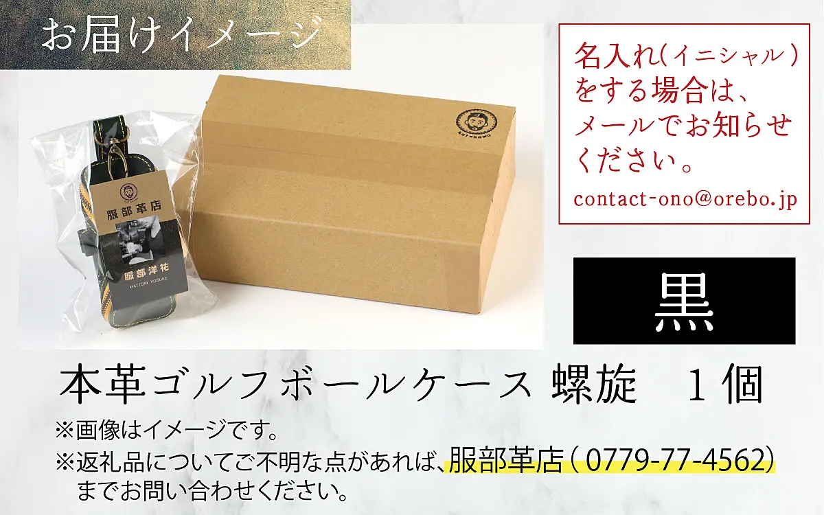 【6色から選べる】本革ゴルフボールケース 螺旋 黒【イニシャル名入れ対応】 [B-024003_05]