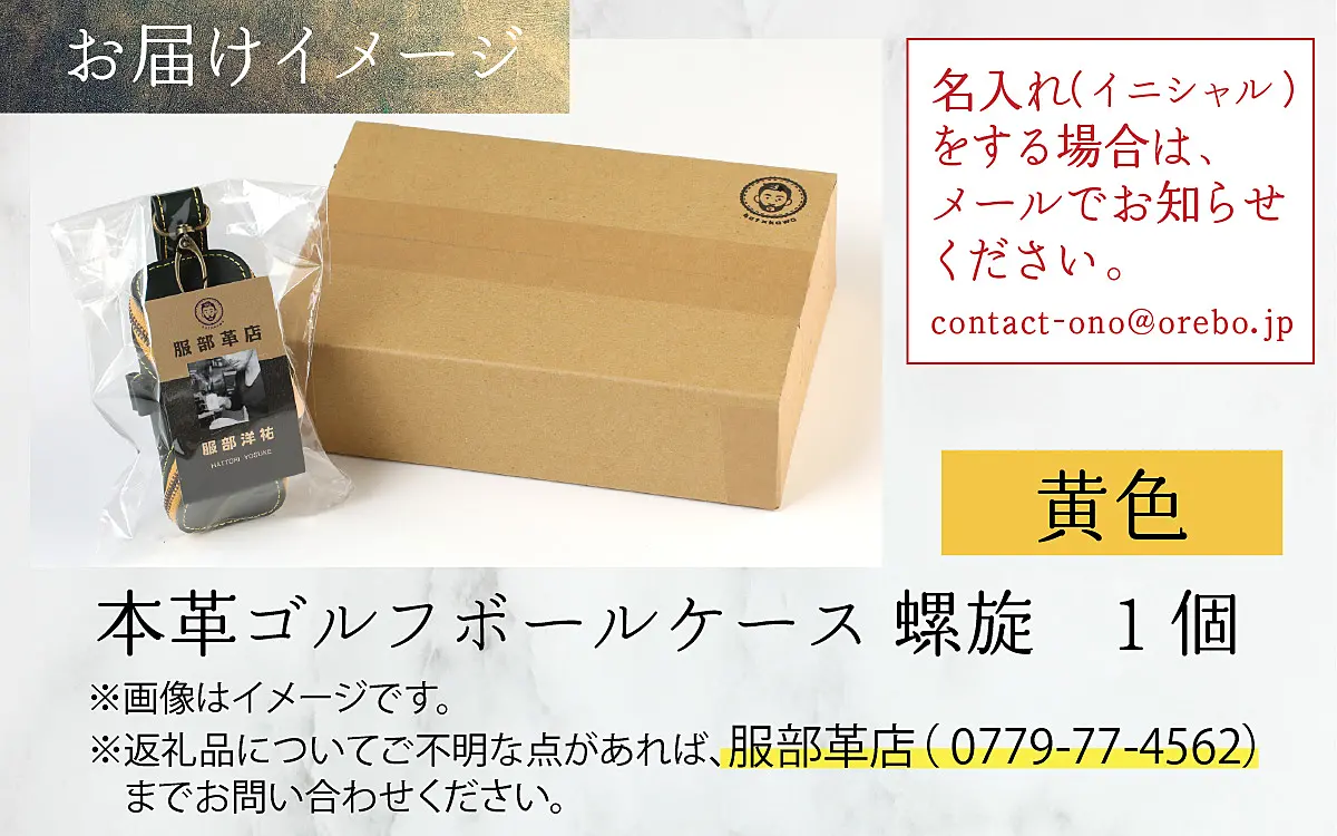 【6色から選べる】本革ゴルフボールケース 螺旋 黄色【イニシャル名入れ対応】 [B-024003_06]