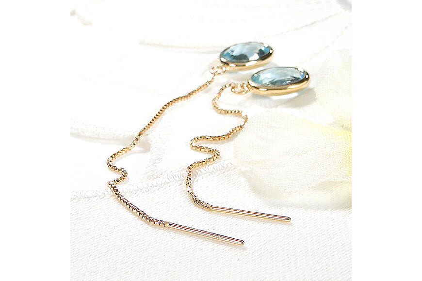 ピアス チェーンピアス K18YG イエローゴールド ブルートパーズ 【f233-bt-k18yg】 [20745212]