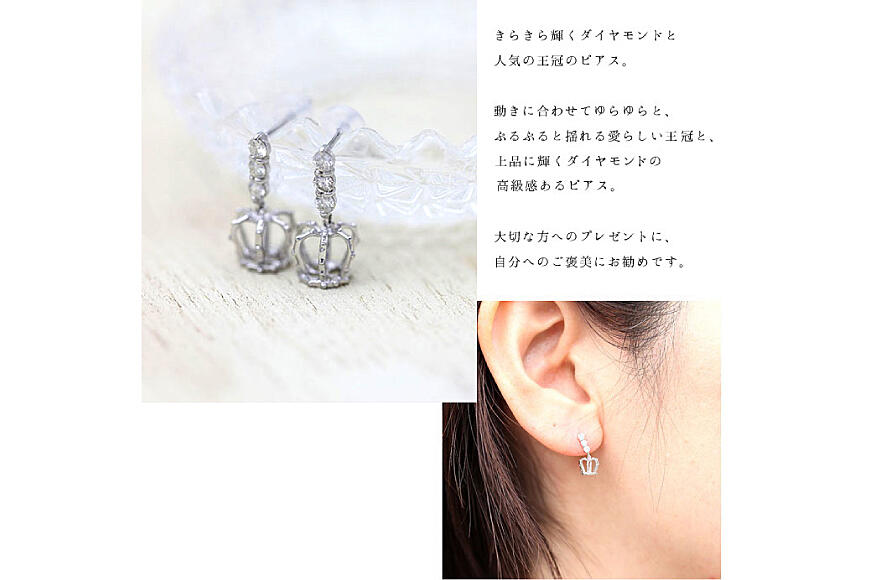 - 王冠 クラウン モチーフ 揺れるピアス レディース アクセサリー アクセ ジュエリー オーダーメイドジュエリーメイ 山梨県 韮崎市