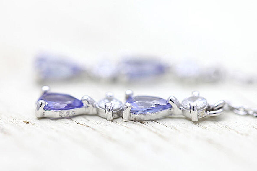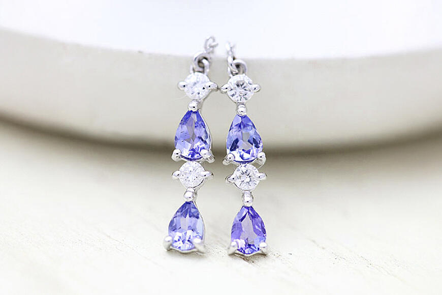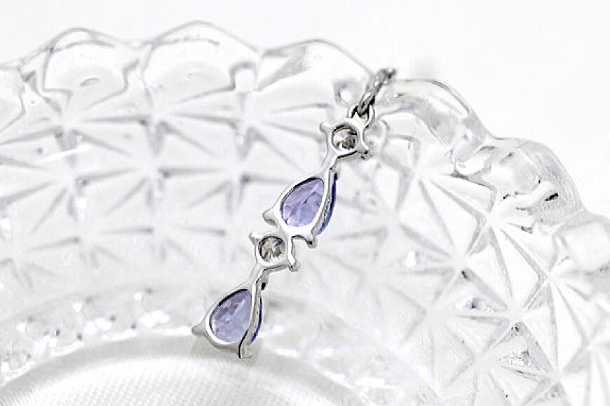 透明感あるペアシェイプのタンザナイト4石と、キラキラ輝くダイヤモンド4石 約0.16ctが、