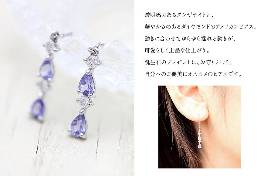 ピアス タンザナイト ペアシェイプ プラチナ PT900 ダイヤモンド 0.16ct【f090-pt】[20745204]