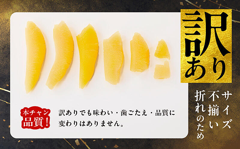 折れやサイズの不揃いがあるため"訳あり品"としてご用意しましたが、味・歯ごたえ・品質に変わりはありません。