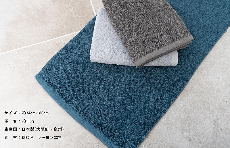 - 素材:綿67% レーヨン33% 日本製(泉州タオル)