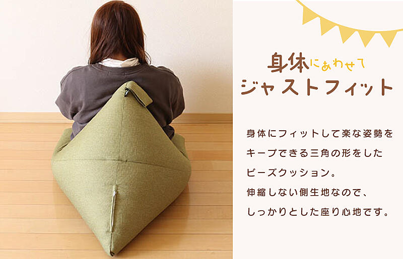 099H2717 国産ビーズソファー(カーキ) トライアングル