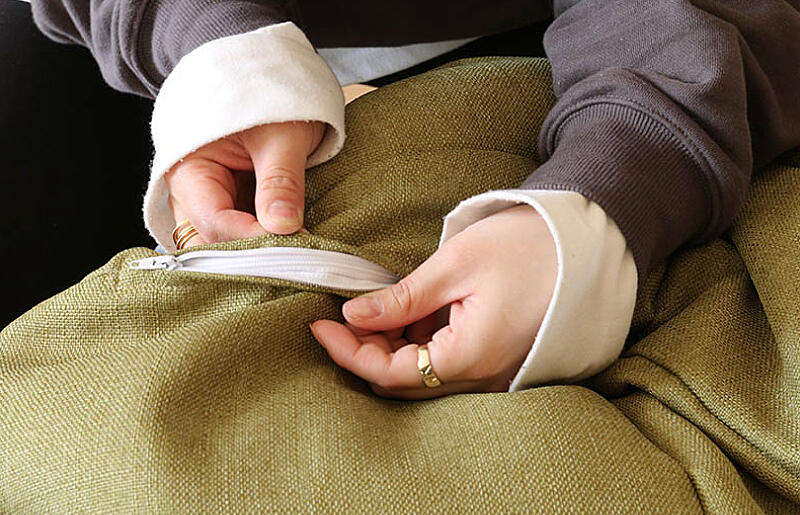 側地:ポリエステル100%、中材:ポリスチレン(発泡ビーズ 約3mm)