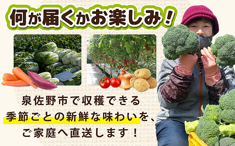 泉佐野市の農家が心を込めて育てた旬の野菜をお届けする詰め合わせセット。