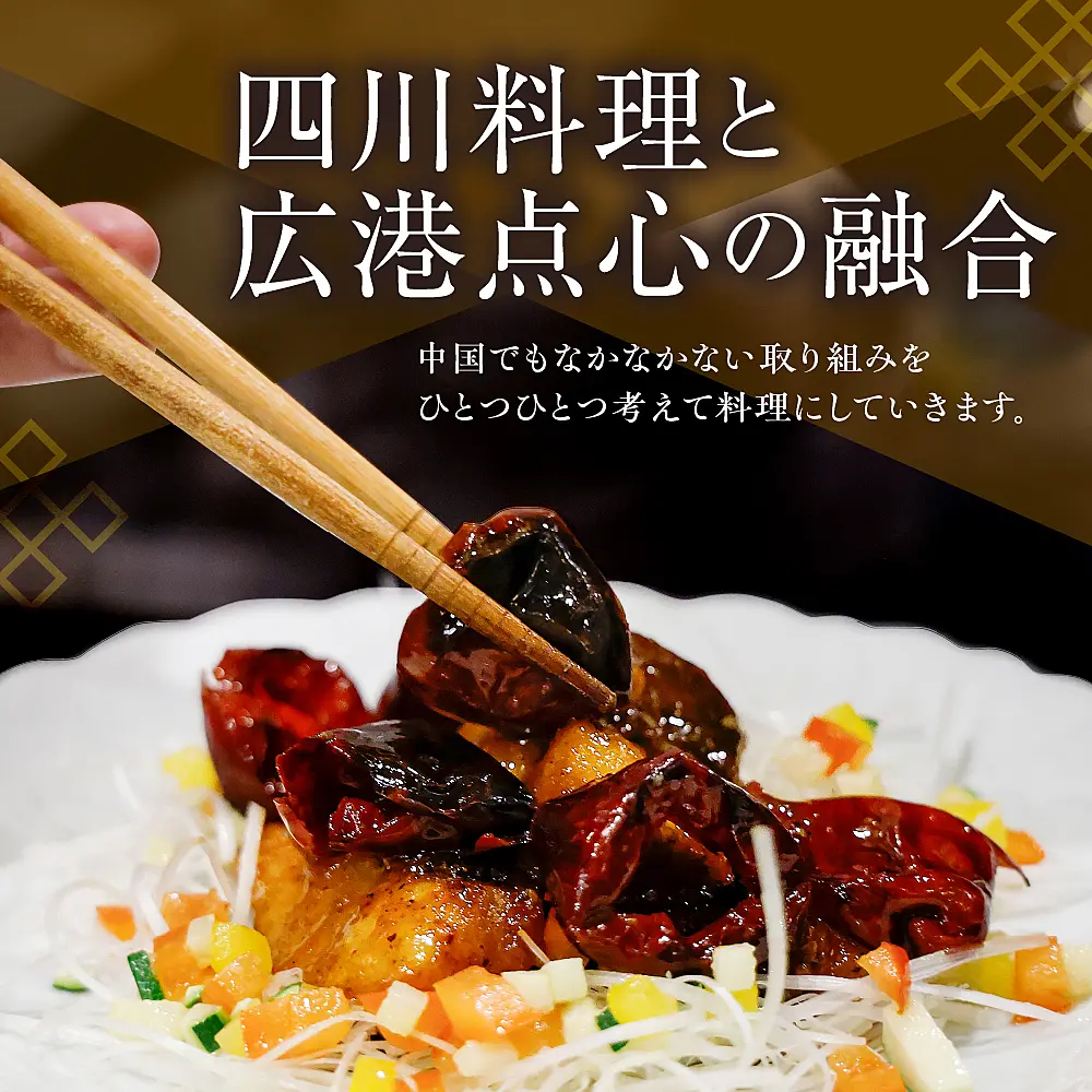 【恵比寿 四川料理】中國菜 李白「旬の芽室食材とフカヒレの姿煮入り贅沢コース」食事券1名様分 me061-051-1