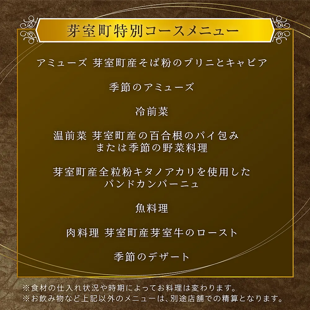 芽室町の特産品を使用したフルコースお食事券をお届けします。
