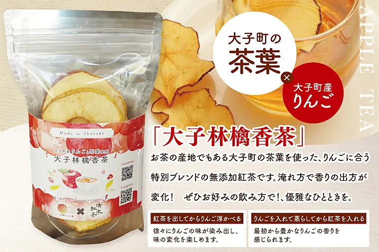 お茶の産地でもある大子町の茶葉を使った、りんごに合う特別ブレンドの無添加紅茶です。