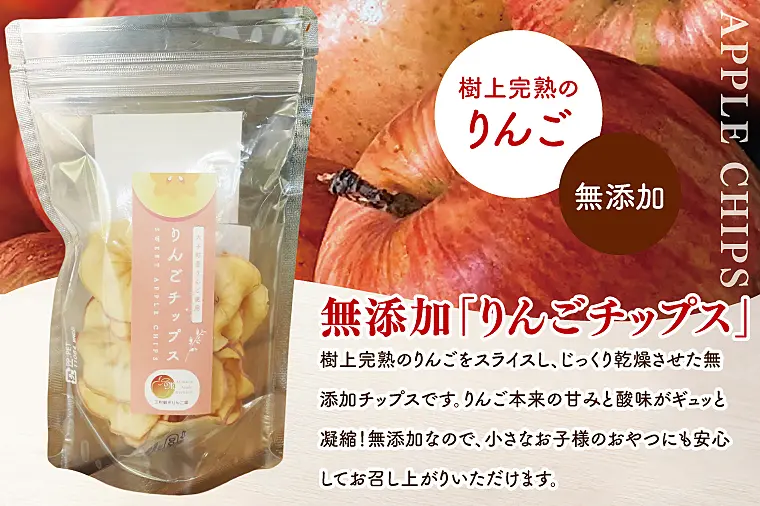 樹上完熟のりんごをスライスし、じっくり乾燥させた無添加チップスです。