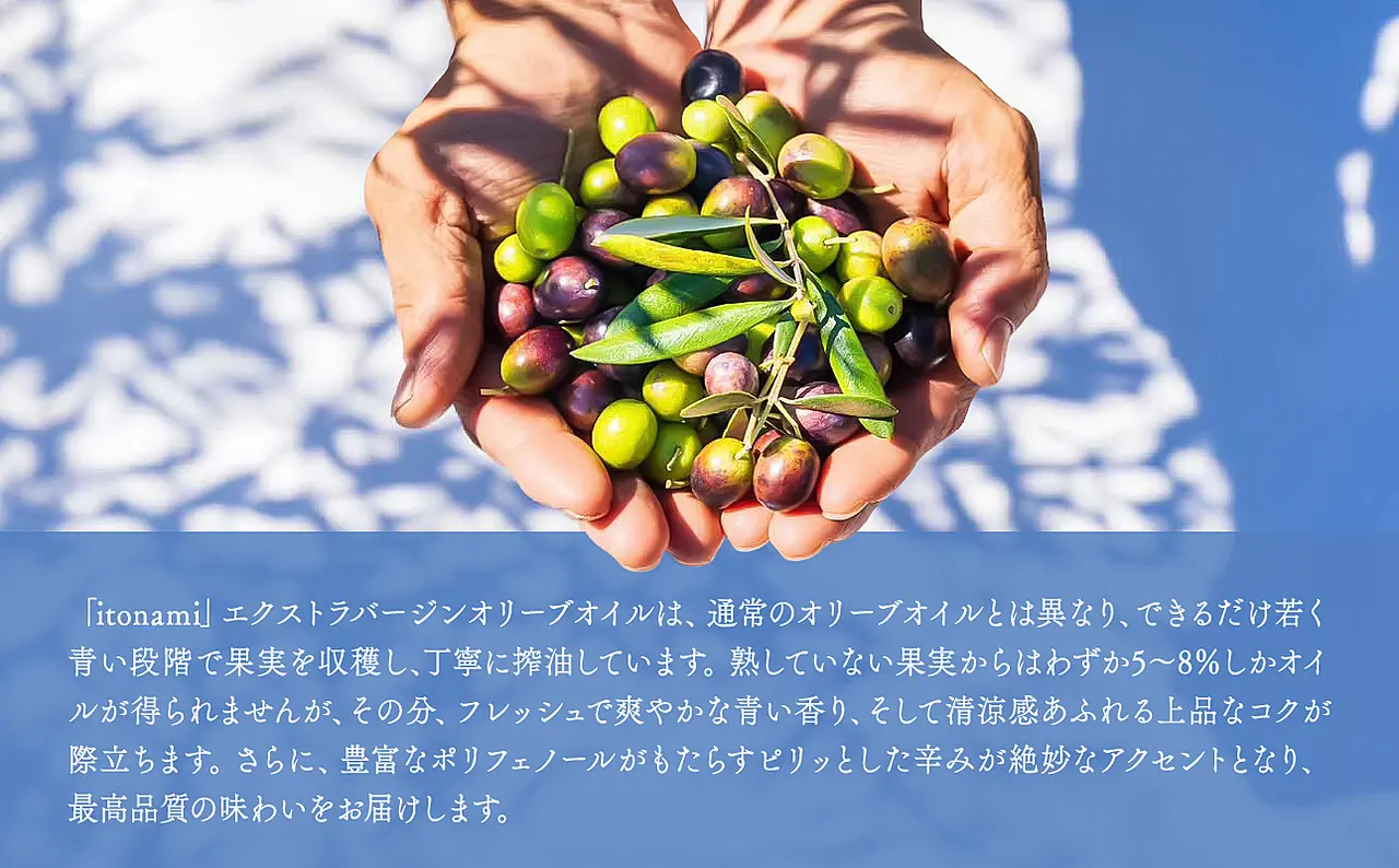 「itonami」エキストラバージンオリーブオイルは、一般的なオリーブオイルとは一線を画す特別な存在です。