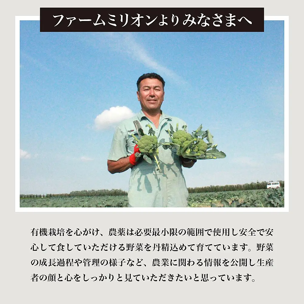 当農園では、有機栽培を心がけ、野菜の成長過程や管理の様子など農業に関わる情報を公開し、皆さまに安心して食していただける野菜を丹精込めて育てています。また、それらの新鮮な野菜を使用し、一手間加え、自社工場にて加工品も製造しています。“旬の野菜で食卓に笑顔を…” どうぞ本物の美味しさを味わってください。