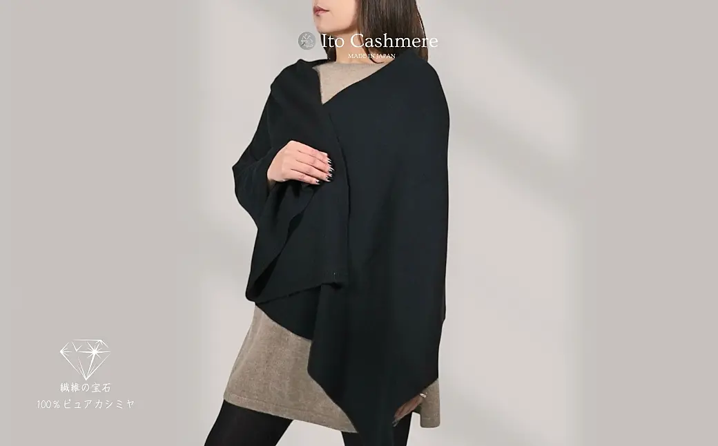 099H3515 100%ピュアカシミヤ・大判ストール フリンジ無し ブラック