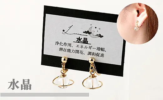 鹿児島県 天城町 土星 イヤリング 水晶 1個 天然石ビーズ パワーストーン 両耳用 サージカルステンレス 幅2cm
