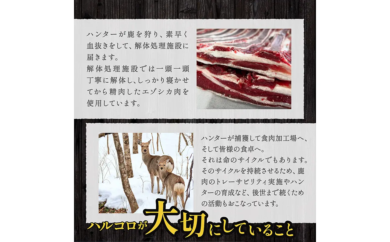 駆除されたエゾシカを廃棄するだけが解決策ではない、をモットーに利活用を推進中。